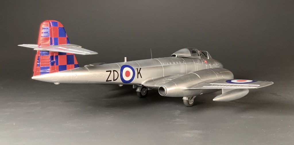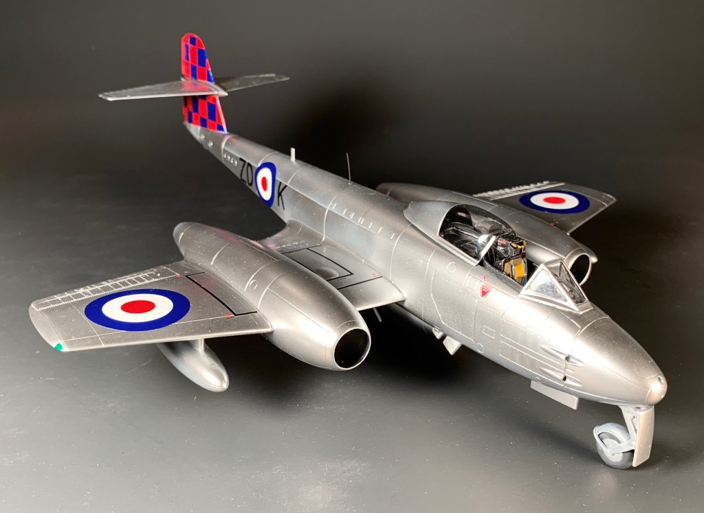Finished in Alclad II High Speed Silver, with Xtradecals markings for No.222 Squadron. Shimmed all the open doors for a smooth closed up look. Some weathering in the wheel wells with MiG Oil Brusher Motor oil. This kit had multiple sink areas in hard to deal with locations, and required shimming in the wing roots, as well as sprue pieces as spreaders glued inside the fuselage. It also required sanding of every exterior surface to knock down the orange peel surface texture in prep for the silver lacquer finish. A very real pain considering all the wonderful surface detail included by Airfix.